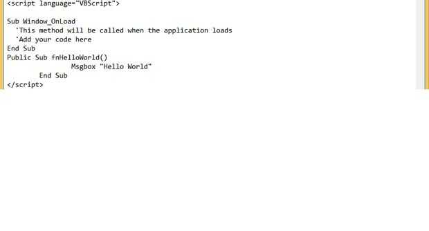 Paso 3: agregar el script a la aplicación HTA añadir las funciones que se requieren dentro de la etiqueta de secuencia de comandos (consulte la captura de pantalla 3)