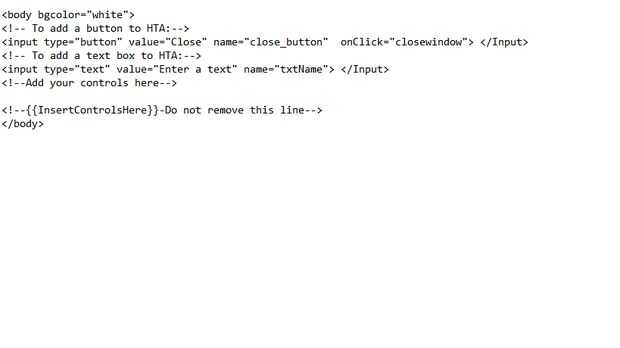 Paso 2: añadir objetos a la aplicación HTA añadir los objetos necesarios dentro de la etiqueta body en el HTML (consulte la captura de pantalla 2)