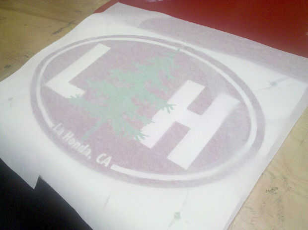 Entonces exprima el agua de la la capa de vinilo básico utilizando un squeede presionando el centro papel transferencia al borde en todas las direcciones radiales a partir de la capa de vinilo superpuestos a los bordes de la capa de base vinilo