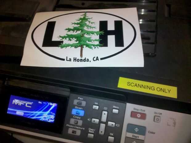 El primer paso fue conseguir una pegatina con el logo de nuestra ciudad y exploración con un escáner de techshop.