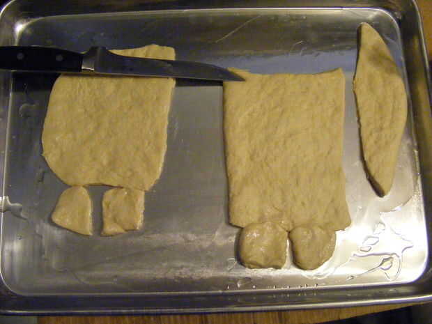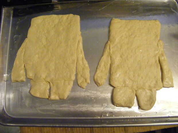 Cortar tiras de masa para formar las patas cortas y los brazos.