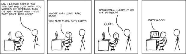Las historietas siguientes fueron basadas en conversaciones reales. Un comic XKCD fue hackeada para adaptarse a la conversación.