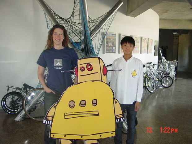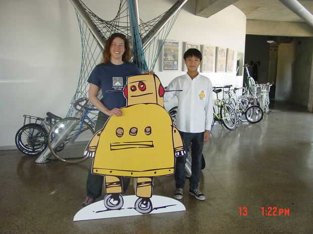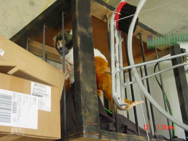 Realmente no sé que Christy desaparecido hasta que entramos en su oficina. Ella estaba sentada allí en ella (impresionantemente laser cutted) portátil de Instructables y yo ni siquiera sabía que salió de la habitación antes! Por lo que Eric nos mostró su oficina donde su cinética lo fue. Como girar la rueda de la bicicleta para hacer el alambre se mueva, y al tocar el alambre, meneos y materia. Él también tenía su "mono en una jaula". Luego nos mostró este eléctrico cosita-majig que tendría el rayo eléctrico ir encima de él. Podría de choque le mal si toca. Entonces él me dio unas tarjetas de visita, pero no sólo eran tarjetas de visita, también eran pegatinas!!!!!! ;-) Entonces vi pato-Mouse de Christy que mi cerebro retardado no toma una foto de.