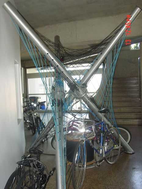 Justo fuera de la sala de corte de láser (etiqueta hacer sala de máquinas también) es su gran basura. Alguien estaba haciendo un generador humano que permitiría cosas de alimentación, carga cosas y cosas así, simplemente tirando de 2 cuerdas o algo. Tenían un montón de cosas basura en el suelo, como cometas y estas cositas animosos. Es ese dinosaurio azul / raro lo de las imágenes. No estábamos allí por mucho tiempo.