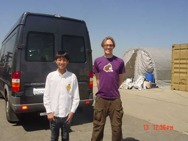Salimos de la parte trasera de la tienda, fuera de su patio enorme cosa. Tienen un camión de bomberos, pero lamentablemente me olvidé de tomar una foto de él. Bueno, yo iba a, pero no. Lo lamento... ¿Pero de todos modos, supongo que estaba en la cima de todo el mundo cosas del carro de la "basura"? Tim Anderson! sí. Se puede ver que tenía sus auricular cosas, escuchar a los sobrevivientes de la guerra de Vietnam o algo hablando de sus vidas. Pero fue divertido. Al principio, Eric era como, "Tim!". Él no oyó. "Tim!". Aún no hay respuesta. "Tim!" aproximadamente 2 veces más. Eric comenzó entonces a subir a una de las cosas, que no tomo una foto de él subiendo (por desgracia).. Cuando llegó a la cima, era como, "TIM!" Tim se volvió alrededor de todo rápido y fue como, "Oh, hey!" Entonces Eric dijo, "¿por qué venir aquí y conocer a alguna gente nueva? — Por supuesto.", dijo Tim. "Esto es GorillazMiko de Instructables, y trata de Patrik.", dijo Eric. "Oh, GorillazMiko!", dijo Tim: «Gracias por el aliento!» (¿Cachas? Porque me comentar sus Instructables...). Entonces oí Patrik susurro, "generalmente comenta primero de todos la nueva Instructables." a su esposa, supongo. Entonces escuché Ooooooh. Pero fue agradable reunión Tim. Tenía la rueda de manejo de la nave y él era como, "¿nadie quiere esto?" Pensé era broma, pero luego se lo dio a la esposa de Patrik (todavía no estoy seguro si esposa.). Entonces estaba como dang... porque eso hubiese sido en mi muro. Aunque era bastante pesado. Pero entonces después de eso, comenzamos a hablar sobre el sitio web, y vi el autobús de la escuela de Squid Labs. En el exterior fue donde tomé una foto con Eric, pero no con Tim... Deseo me hizo tomar una fotografía con él sin embargo. Hubiera sido cool. Dos chicos locos (bueno no estaba loco que como estoy en la escuela, que es más de 10 en una escala de 1-5.), ser cool. No se detiene en las ruedas de manejo de la nave. sí, así es la vida. Así es la vida...