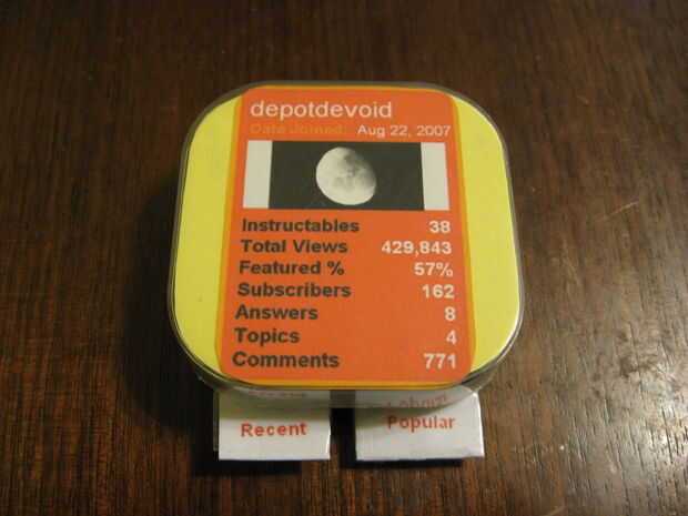 La idea en que he golpeado es una etiqueta de nombre, en torno a mi playercard de perfil y los proyectos que soy conocido por (suponiendo que me conoce). Siga leyendo para aprender cómo se hizo y hacer uno para ti! ¿Me encantaria ver Instructablers (Instructapeople? ¿Instructapersons? Iblites?) usar uno de estos o simplemente una impresión de su propia playercard cubrió en sus camisetas!