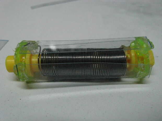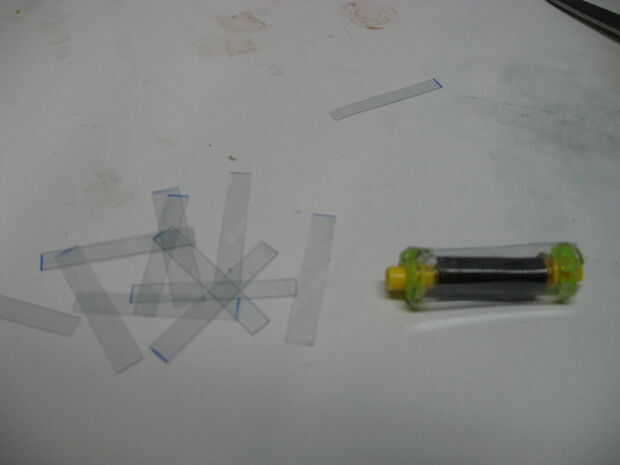 Usando pegamento caliente, coloque las tiras de plástico a los círculos de plástico. No utilice demasiado pegamento o a goma el resorte y el rodillo. Después de establece el pegamento, use un poco de epoxy permanentemente cosas y deje que los rodillos seque durante la noche.