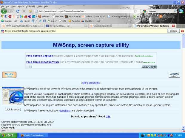Primero apagado, descargue e instale una pieza de software libre que se llama MWSnap. Asegúrese de poner un par de dólares para el autor de ese programa, es muy práctico y fácil de usar. Una vez que listo y funcionando, cabeza de instructables.com de allí.