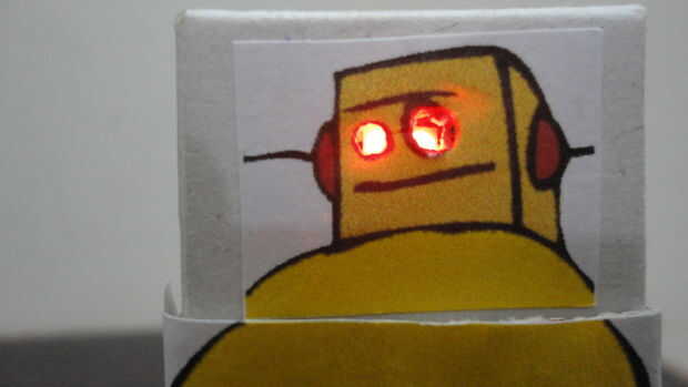 Esto es sólo una caja de cerillas que se transforma en un robot que tiene que parpadear Leds...