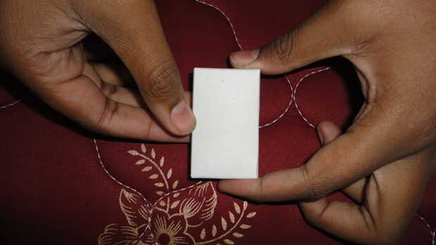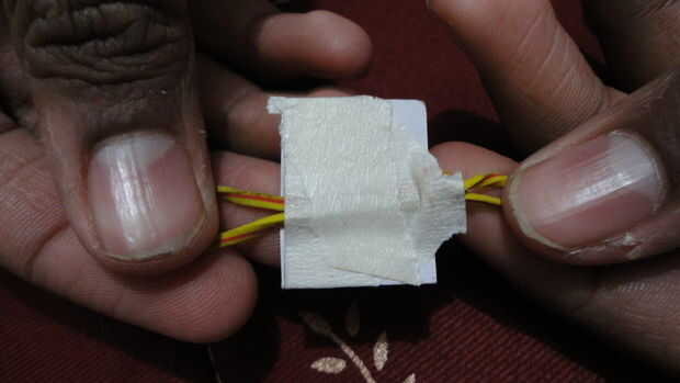 Ahora toma una gran banda de goma y pegar un trozo de papel de la foto mide 2cm * 2, 5 cm y pegamento para el centro de la goma de la banda como se muestra en las imágenes...