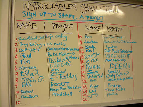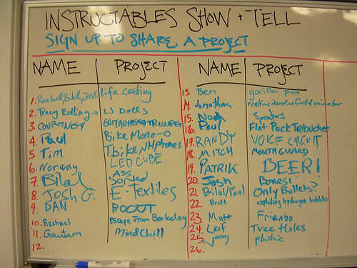 Siguiendo el formato normal de cómo ejecutar un Show and Tell, personas se inscribieron presentar un proyecto y consiguieron todo el tiempo sea necesario, o hasta que me aburrí, lo que vino primero.