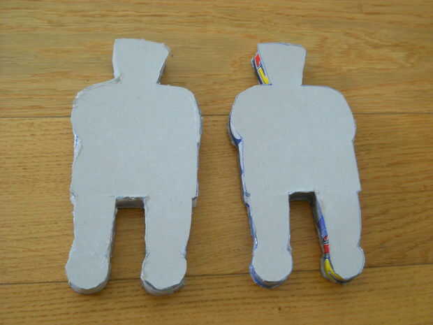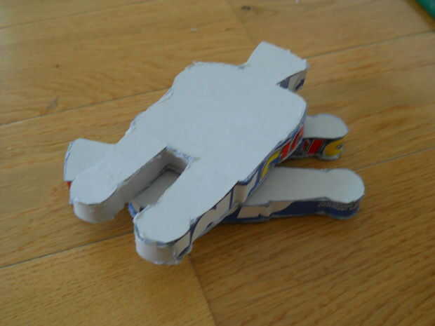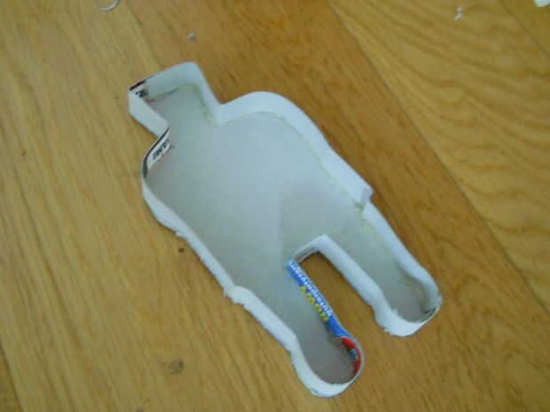 Luego tomar el cartón o tira de cartulina que cortan y a lo largo de los bordes del robot para formar un contorno relieve colocar como se muestra en la imagen. Luego tomar el otro recorte de robot de instructables y pegamento en el contorno relieve como se muestra en la imagen, al hacer esto se realizan con un auricular.
