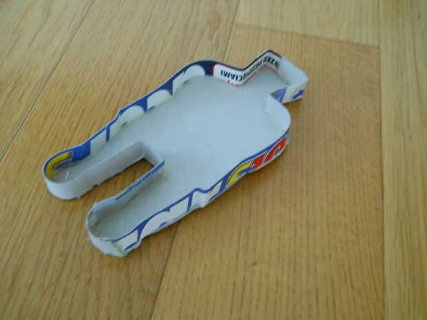 Entonces tendrá que cortar un agujero con un radio de unos 3 cm en el centro de la bocina pero el agujero debe estar sólo en un lado. En el lado al lado de la pierna que tendrá que cortar una ranura pequeña, es donde se inserte el auricular en.