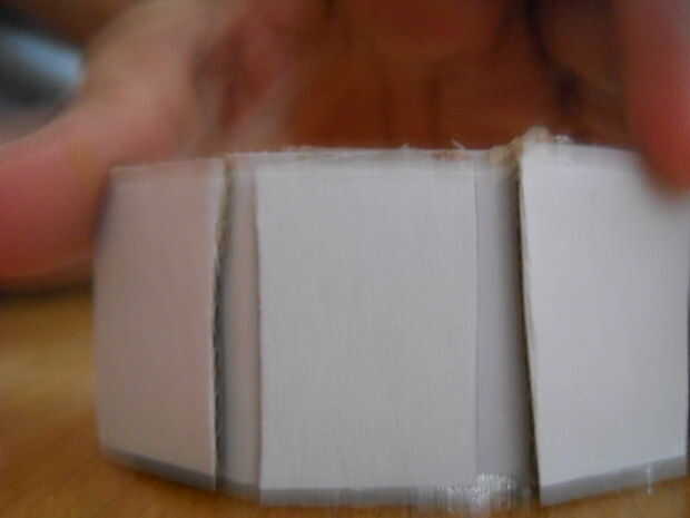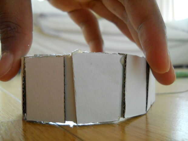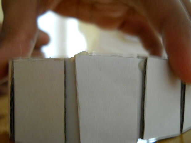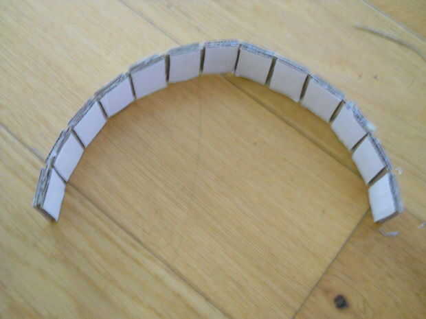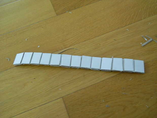Entonces usted tendrá que cortar cartón 3-5 cms ancho como ancho como su banda principal y luego unos 2-3 cms a lo largo, se necesita cortar un montón de estas piezas.