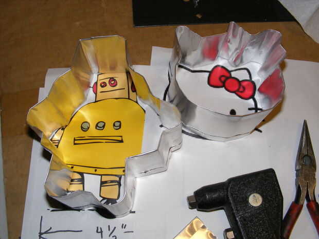 Con los bordes doblados en la parte exterior, suavemente coaxial la tira y dóblela alrededor de la forma de su patrón de papel. Utilice alicates de punta delgada para que la curvas o pliegues. Usted puede marcar los puntos donde debe doblar y si a mano alzada de la foto. Utilice un martillo para libra el aluminio sobre un pasador para obtener una curva suave. Utilizar el alicate de punta fina para prensar doblada que se desarrollan en los bordes. Traslape el extremo suficiente para colocar un remache allí para celebrar juntos. Taladre el orificio piloto para el remache y remache junto. Si no tienes un remachador de la mano, sólo doble un extremo plegado los bordes de la otra y prensado. Será suficiente para sostener juntos pero puede surgir aparte cuando se rellena el formulario.