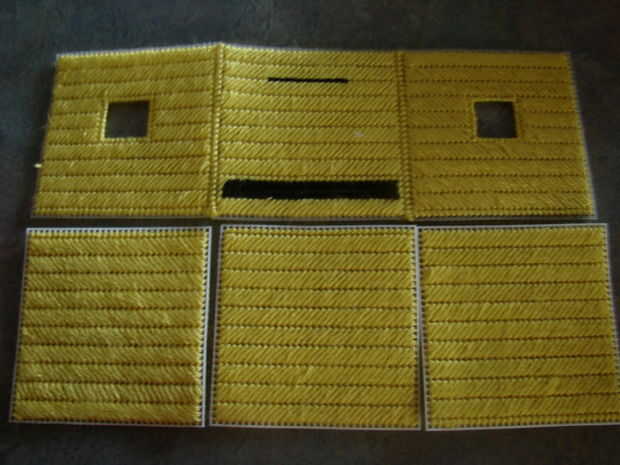 Para que azote los bordes de los agujeros para las orejas con hilo amarillo, y azote los bordes de la boca de la raja con hilo negro. Para todos los lados, la parte inferior y la parte superior de la caja que necesita estar conectado, sólo Sujete los dos lados a lo largo de unos a otros y alinear los cuadrados y batir junto con el hilo amarillo.