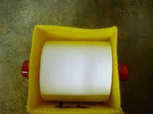 Levante la tapa de la cabeza del Robot, meter un rollo de papel higiénico (tp) en la pieza del tubo de PVC como pegar el tubo a través de los orificios del oído.  Asegúrese de que el tp está rodando desde la parte inferior del rollo.