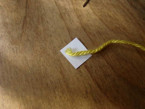 y coloque el extremo de la pieza de hilo sobre la diagonal del papel,