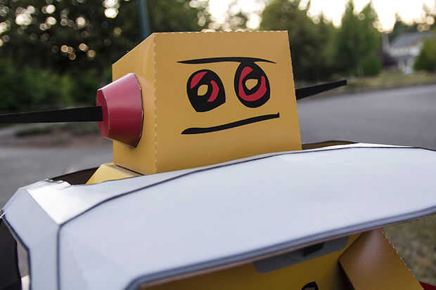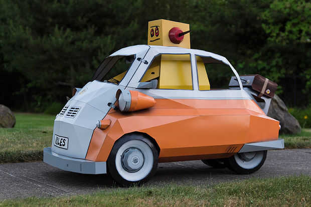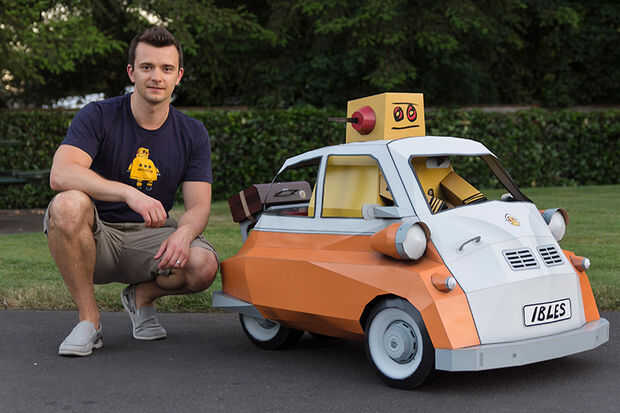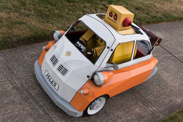 La solicitud del cliente principal fue "crear un vehículo ideal para el robot amarillo del logotipo de Instructables que captura la diversión y los elementos peculiares de su aspecto". Después de mis tres opciones propuestas iniciales que se procedió con un conceptual 1960 BMW Isetta inspiraron burbuja coche totalmente modificado por mi imaginación mientras que siendo coherente con la marca de Instructables.