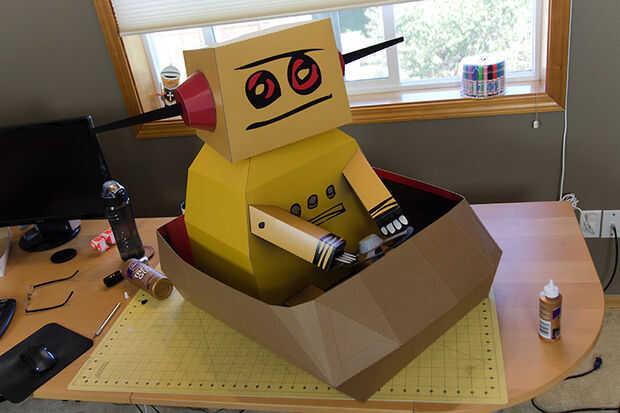 te amo, amo, nos amamos el Instructables Robot!Yo quería hacer una tarjeta pop-up Instructable en el aprecio de todos los trabajadores y ' iblers que hacen posible este sitio! Qué mejor manera de hacerlo que to hacer un pop-up de nuestro favorito rob