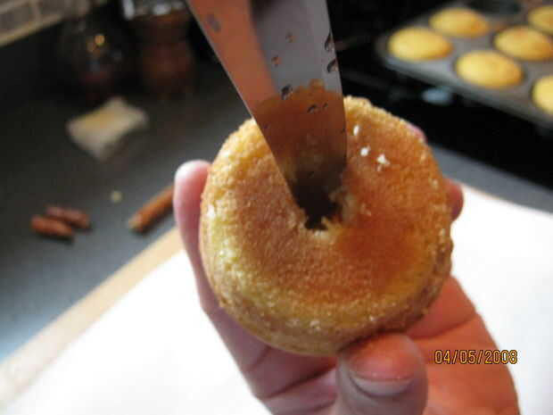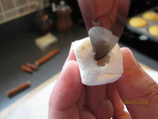 Utilice un cuchillo para cortar un agujero en el centro de la Magdalena.