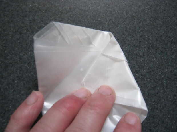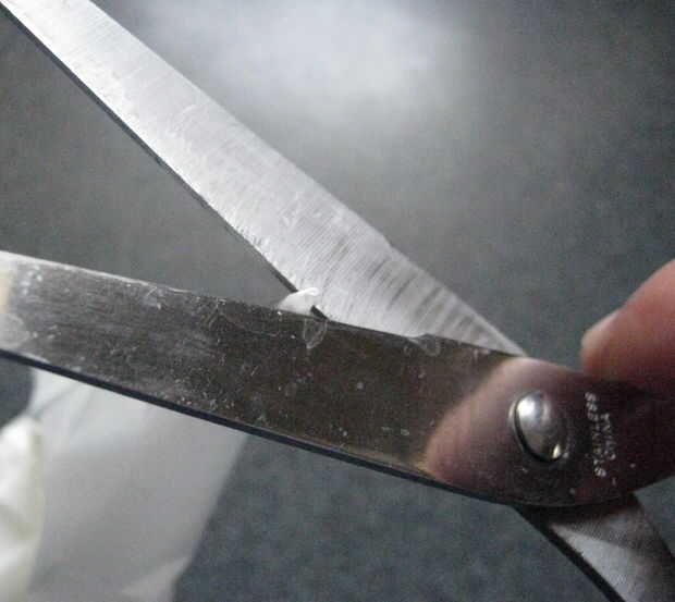 9. Cortar el extremo de la bolsa con unas tijeras según el tamaño deseado.