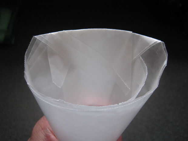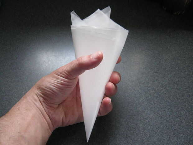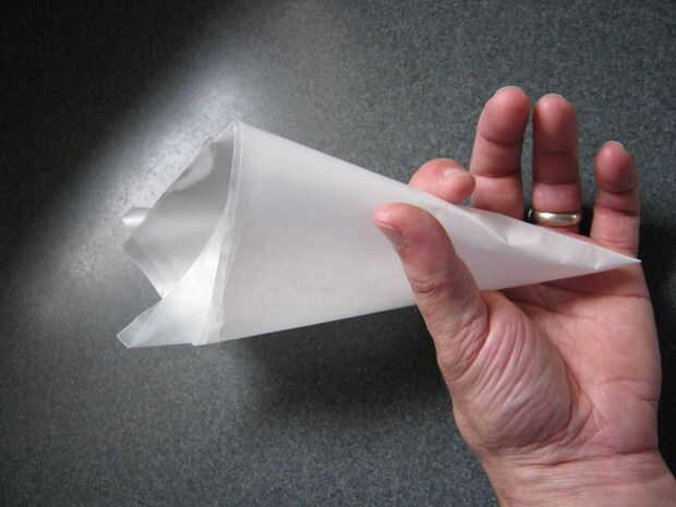 Para la hierba o los ojos necesita una manga pastelera. Es muy fácil de hacer uno de papel encerado o papel de pergamino.