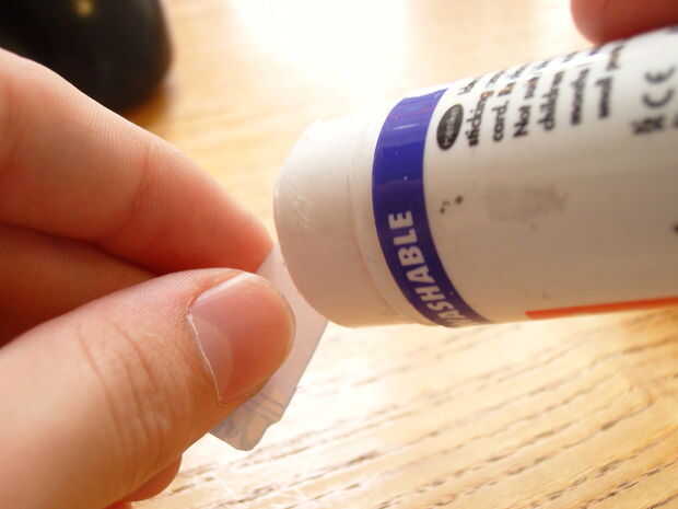 Para los brazos, poner un poco pequeña de pegamento en la parte superior y colocar a los lados del cuerpo (Foto 3,4)
