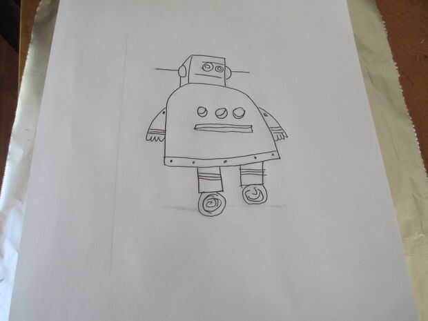 Trazar el contorno débil del robot. Aplique mucha presión para que la imagen se presiona a través de la lámina.