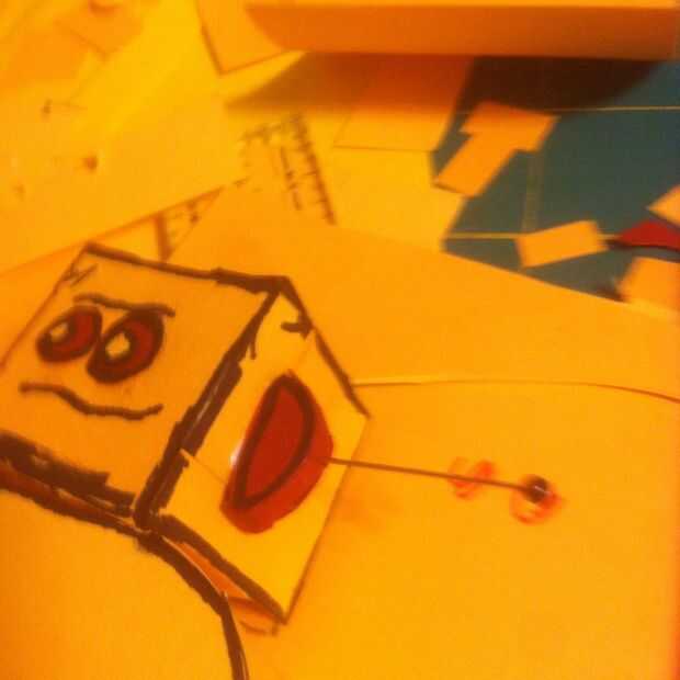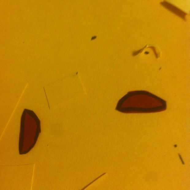 Recorta los ojos mediante el uso de papel y delinear los ojos con rotulador (como se ve en el dibujo.
