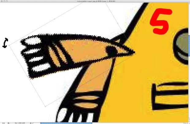 Aparece un cuadro alrededor del brazo ( imagen 4 ) y cuando el cursor se pone a las afueras de esta caja, cerca de la esquina, el cursor cambia a un pequeño arco. Izquierda haga clic y arrastre hasta la orientación deseada.