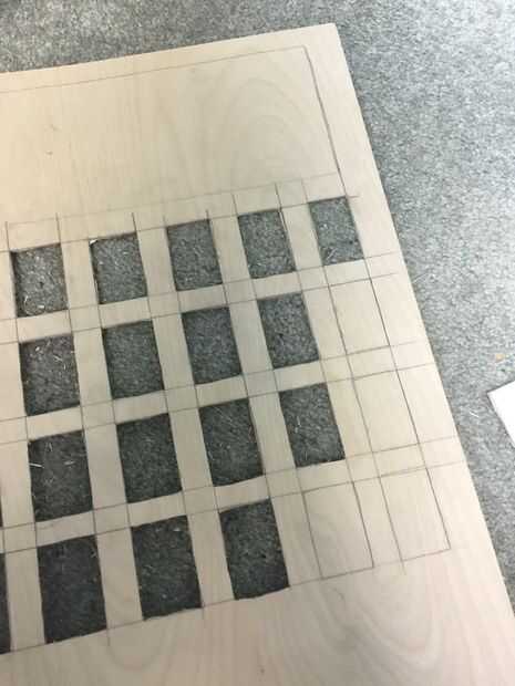 Una regla general con robots es si están afiladas son hostiles. Repito, usar herramientas no electrónicas cuando corte 28 agujeros de 1,5 x 1 en agujero de 8cm x 26cm de dos piezas de madera contrachapada fina de Miguel.