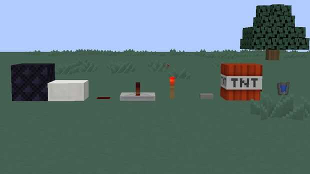 Estos materiales incluyen: obsidiana, losas de mármol, Redstone, Antorchas de Redstone, repetidores, Un botón, Un cubo o ' aguay por supuesto, TNT!