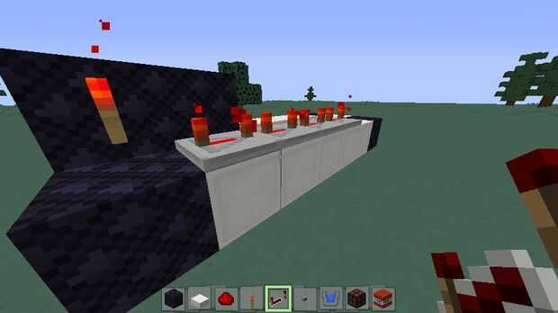 En primer lugar, coloque una antorcha de redstone en el lado derecho del bloque en la parte superior de la cerca de la media final del cañón.