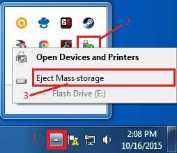 • Expulsar el Flash Drive con seguridad desde tu ordenador haciendo clic derecho sobre el botón de hardware situado en la esquina inferior derecha de la pantalla de expulsión con seguridad.