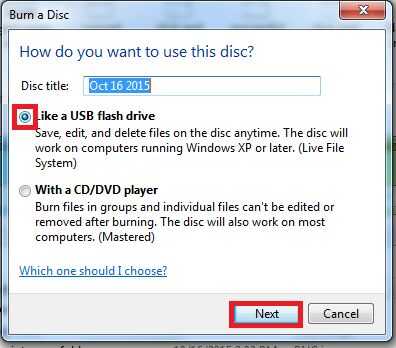 • Nombre del disco, seleccione la opción "como una unidad flash USB" y haga clic en siguiente.