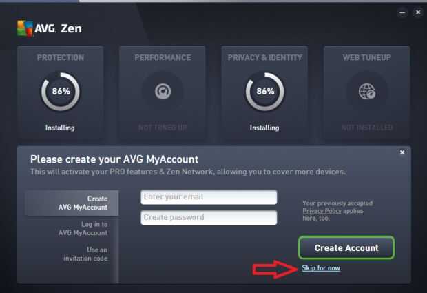 • AVG le pedirá crear una cuenta luego pero le sugiero a la omitiendo por ahora. Puesto que se trata de una prueba gratuita de la aplicación de una cuenta no beneficiarle mucho.