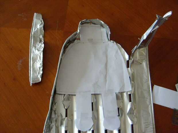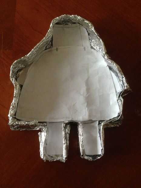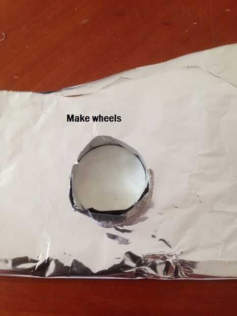 Para las ruedas he utilizado una tapa. Necesitará la hoja barbacoa alrededor de la tapa del rodillo como es más grueso que el papel de cocina. Ahora envolver un pedazo debajo y cubierta de la rueda entera con el papel de aluminio.