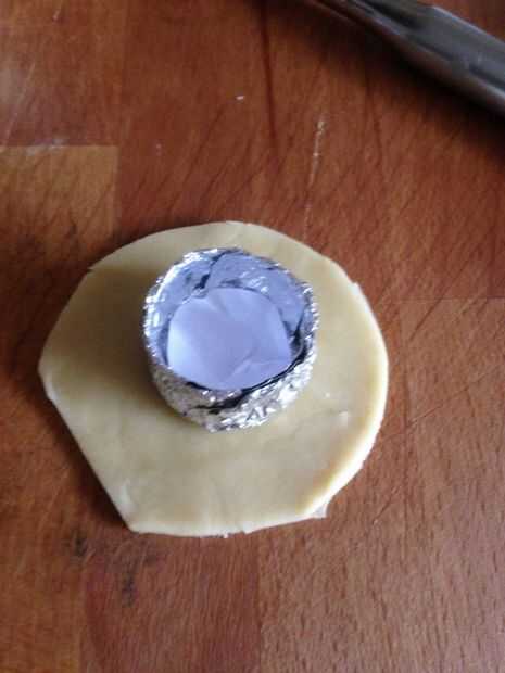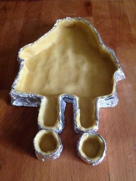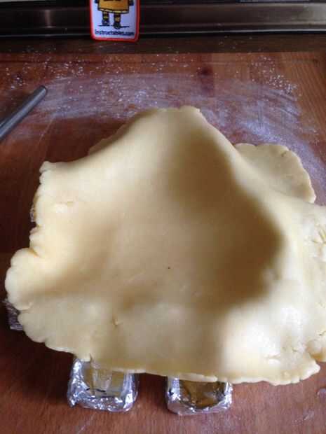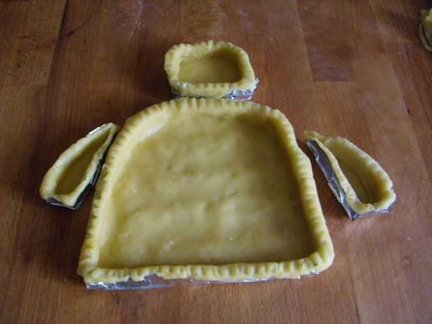 Esta es la parte más difícil para insertar dentro de la bandeja porque el Robot las piernas y las manos son pequeñas. Presione con cuidado la masa en los bordes de la bandeja. La segunda bandeja presiona la masa con un tenedor-esto es sólo una idea de lujo-saltatelo. Cortar una ronda e introducirlos en las ruedas.