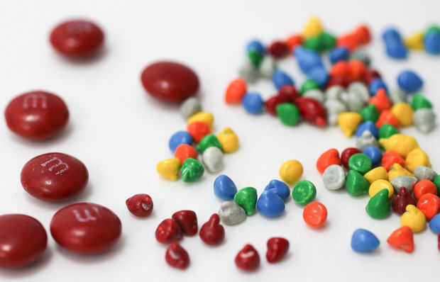 Si aún es demasiado húmeda la capa de caramelo M & M será pesado y arrastrar hacia abajo, espera que un rato y se comenzará a establecer.