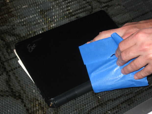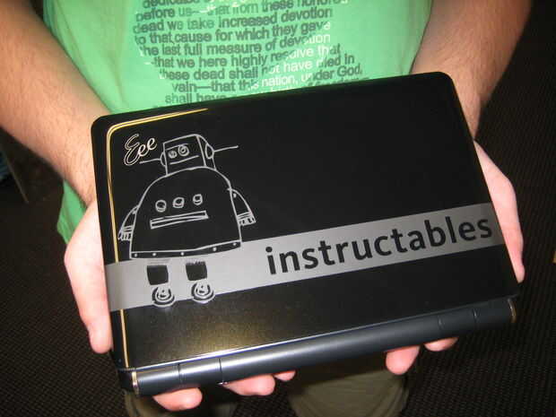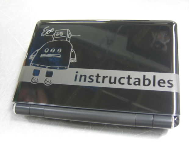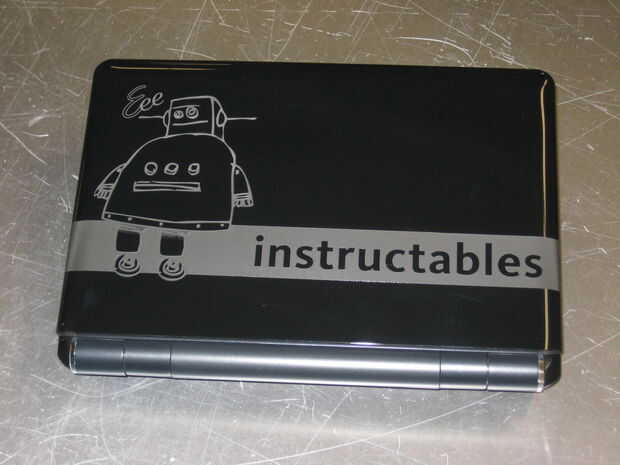 Aunque fui unas diferentes versiones del logotipo robot/instructable, antes he optado en uno me gustó y luego ajustar el tamaño para caber el portátil.