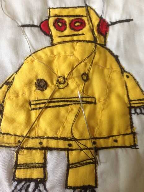 Tuve tiempo para hacer un poco más de creatividad. Así que aquí estoy ampliando los botones del pecho y llena de thread.it marrón es fácil de usar dos agujas con diferentes colores. Simplemente rápido a mano coser. ¿No ve bien?