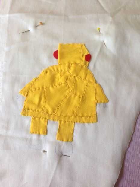 Cortar un trozo de fieltro muy grueso para el tamaño del robot y la clavija en el lado equivocado. Hacer cualquier puntadas de bordado, que la tela tiene que ser un poco gruesa para proteger reúne y será limpio y fácil de coser.