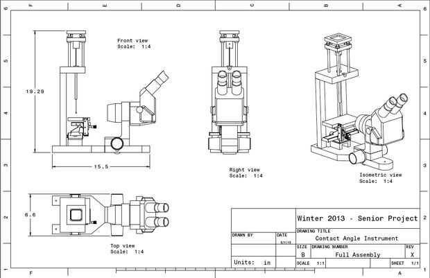 El instrumento que creé fue diseñado para resolver varios problemas que fueron encontrados para causar resultados poco fiables en las mediciones de ángulo de contacto con el equipo anterior.