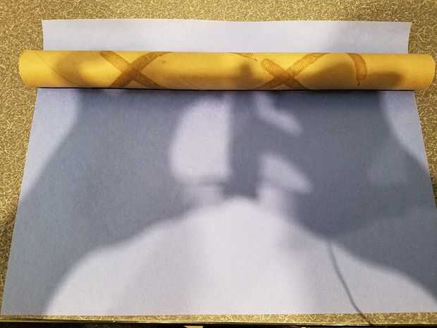 Coloque la toalla de papel rollo de cerca de 1 pulgada lejos el papel de la construcción de 11 pulgadas de ancho.
