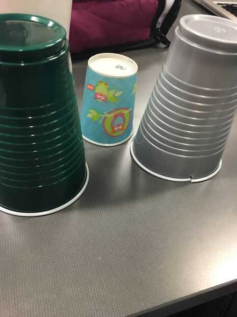 Se reúnen 2 tazas grandes y una taza pequeña.