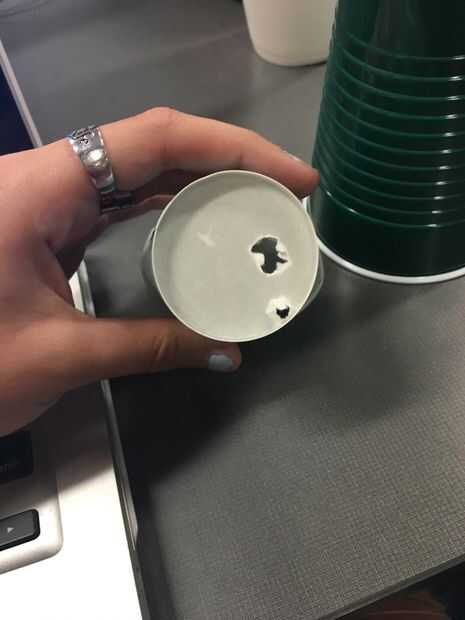 Hacer un agujero en la parte inferior de la Copa más pequeña.