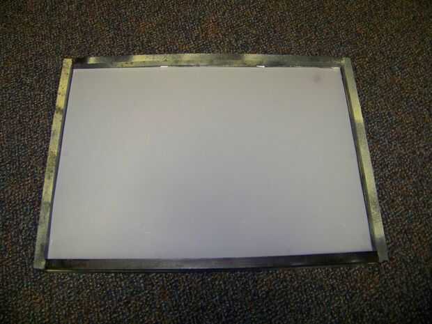 También corte un pedazo de película de opalina y pegadas a la parte superior del vidrio. Esta película es bastante translúcida y funciona bien para este tipo de "luz difusa" de superficie multitouch. Hay realmente una cantidad alta de visibilidad del color para objetos contacto con la película, que haría posible a color si quiero reutilizar este marco para otro proyecto.