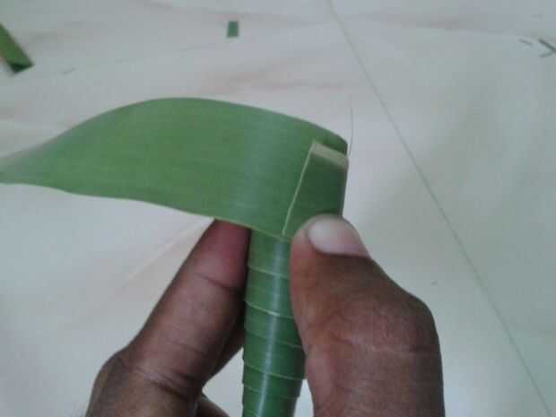 2) Inserte la segunda parte de la hoja por debajo del primer extremo de parte de hoja. Luego rodar la segunda parte de la hoja. Hacerlo una y otra vez.