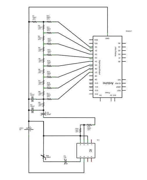He añadido dos 0.1uF condensadores al final de la escala de resistencia para actuar como un bajo filtro de paso. Este tipo de filtro será eliminar las frecuencias más altas causadas por las bajas (8khz) velocidad del audio de muestreo y suavizar la forma de onda. Usted puede cambiar los valores de estos capacitores dependiendo de lo que te gusta.